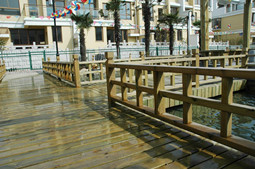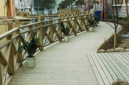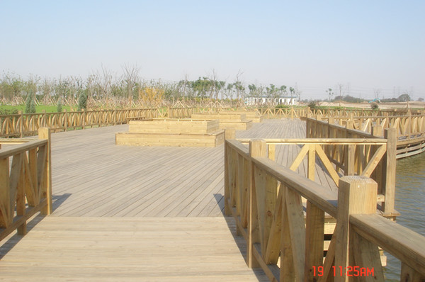 本公司采用防腐處理新技術,經專業防腐處理后,具有耐磨損,紋理清晰美觀,易保養等特點,同時也極具親和力。 我們的產品能抵抗白蟻的侵蝕和孢子真菌的生長,包括水中生物的寄宿和其他昆蟲的產生和繁殖,正常使用下,產品壽命在30年以上。